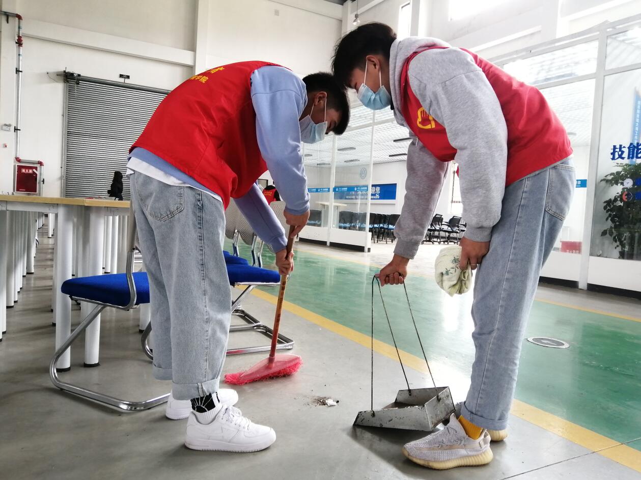 经过一个多小时的辛勤劳作,汗流浃背的志愿者们把设备打扫得干干净净、地面拖得一层不染、桌椅板凳摆放得整整齐齐,环境焕然一新,为同学们新学期的实践教学提供了整洁的学习环境。