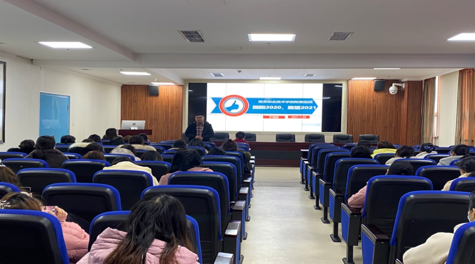 1月28日,学院附属医院护理部在门诊十楼学术厅召开“回顾2020,展望2021”工作总结会,附属医院副院长何跃及130余名护理人员参加会议,会议由护理部主任冯贤萍主持。