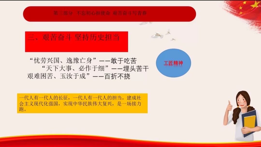 12月6日,我院第十期团课最后一讲“用使命担当托举中国梦”在腾讯课堂举行。本次课程由院团委副书记郭庆主讲,268名学员参与学习讨论。
