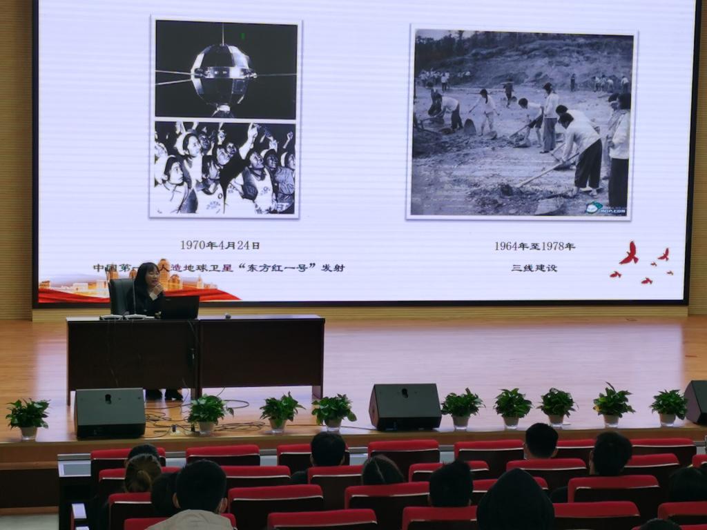 黄君华以“中国共产党成立以来的伟大成就与历史经验”为主题,图文并茂地为同学们讲述了新民主主义革命时期、社会主义革命和建设时期、改革开放和社会主义现代化建设新时期的关键人物、历史事件、指导方针等,通过回顾历史发展进程让同学们深刻感受到中国共产党的伟大成就,源自一直坚持着不忘初心,赢得民心,依靠核心,充满信心这“四心”鼎力前行。最后黄君华勉励同学们作为一名大学生学好专业知识和技能就是对“不忘初心”最好的实践和落实。