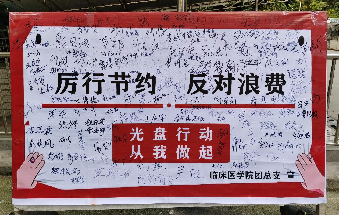 与此同时,临床医学院学生会在育才路食堂门口组织开展倡议活动,同学们纷纷在“光盘行动,从我做起”的签名板上签了自己的名字。厉行节俭,反对浪费,人人有责,人人更要尽责。