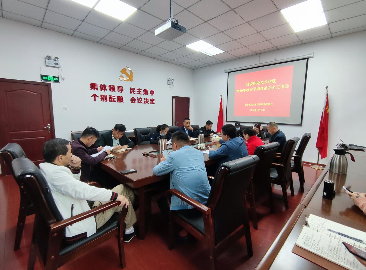 会上,王伟才同志首先通报了学院扶贫产品采购任务执行情况,三校区四家餐饮公司完成采购金额105.83万元,圆满完成了市财政局安排的采购任务,对各餐饮公司大力支持表示了感谢;同时学习传达了《中共中央 国务院关于深化改革加强食品安全工作的意见》、教育部和市场监管总局等国家部委关于学校食品安全工作要求的文件,《校园食品安全守护行动方案(2020-2022年)》等文件精神;重点学习了《国家市场监管总局办公厅 教育部办公厅关于近期学校食品安全事件情况的通报》,并进行了食品安全案例警示教育。同时会上,后勤管理处食品安全监管科杨萍同志通报了秋季学期开学以来学生食堂食品安全管理工作情况,对食堂、校园超市、直饮水安全管理工作提出重点要求:一是完善食品安全管理制度,采取有效措施确保制度落实;二是加强食品安全管理,配备专职食品安全管理员,强化日常食品安全管理,禁止售卖隔夜饭菜,禁止将未经加工的辅助食材直接加入熟食内售卖;三是加强小吃档口管理,引进小吃档口需经后勤管理处审批备案,不允许小吃档口自行采购食材,由餐饮公司统一采购;四是加强校园超市食品安全管理 ,理顺校园超市经营项目,超市不能超范围经营烤肠等食品,加强预包装食品冷冻食品等索证索票、进货查验和台账记录,食品存列规范,价签标注完整,禁止销售过期和不符合食品安全要求的食品;五是加强直饮水卫生管理,严格饮水消毒、监测,并做好记录,确保直饮水卫生安全。同时食品安全监管科将加大检查力度,严查违规违法行为,确保师生饮食、饮水安全。