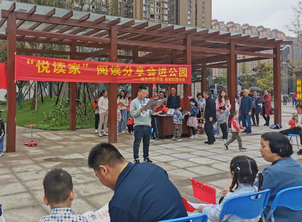 10月1日上午,在国庆中秋双节同庆之日,为进一步推广阅读,让雅安市民朋友关注阅读,学会阅读,让阅读成为一种生活常态,由学院图书馆与雅安市图书馆联合举办的“‘悦读家’阅读分享会”全民阅读活动在高颐阙文博公园成功举行。