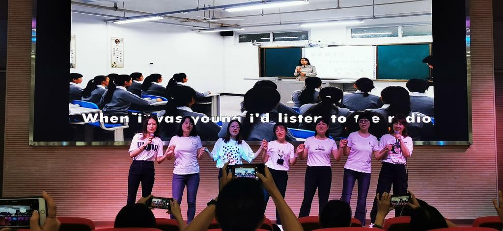 学前教育与特殊教育教研室带来了诗歌朗诵,张晓茹老师和蔡小龙老师以充沛饱满的感情赞颂了教师甘为人梯、无私奉献的精神。中文与传媒教研室全体教师深情演绎了歌曲《长大后我就成了你》, 歌声婉转悠扬,感人肺腑,道出了大家对教师这份职业的崇敬与热爱。英语教研室带来了歌曲串烧,青春洋溢的英语老师们在舞台上尽情唱跳,氛围轻松活泼,现场欢呼声不断。随后,数学教研室的黄正阳老师用竖笛演奏了四首经典曲目,让大家看到了一位平日里严谨的数学老师对音乐和生活的热爱。艺术教研室的老师们钢琴、古筝、尤克里里齐上阵,舞蹈“无价之姐”的表演掀起了全场活动的高潮。最后,办公室的辅导员老师们通过“你演我猜”的游戏调动起全体老师一同参与成语竞猜。整个现场气氛融洽,高潮迭起,笑声不断。