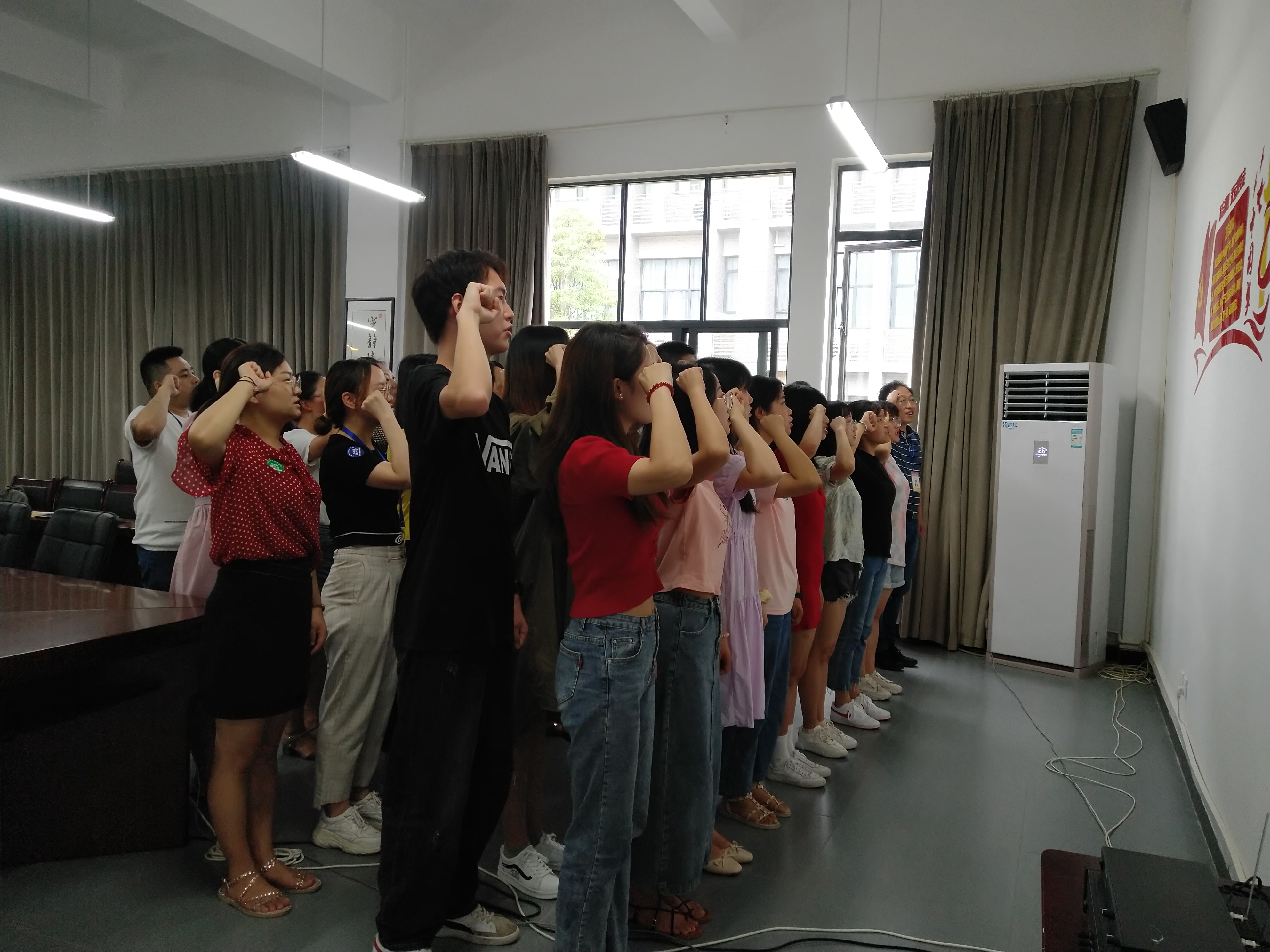 为庆祝中国共产党成立99周年,提高师生党员的党性修养,让师生党员明确自己的职责与担当,7月1日,药检学院党总支在经开区实训与服务中心205会议室开展了“新党员宣誓暨老党员重温入党誓词活动”,36名教师党员及16名学生预备党员参加此次活动。