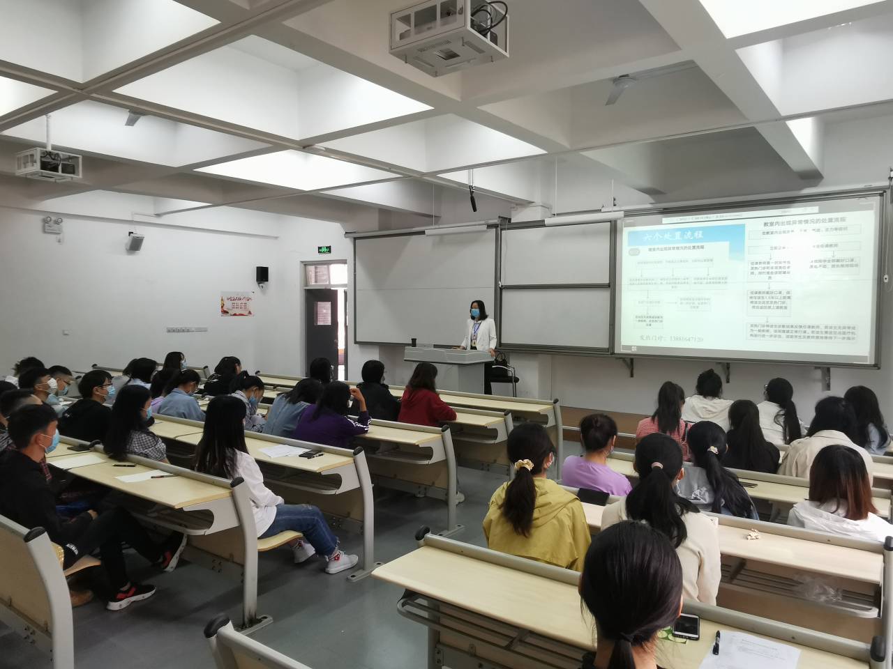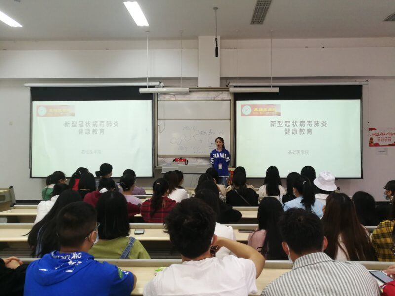 5月26日,学生返校第二天,基础医学院对返校复课的36个班级1325名学生分时分批在教室进行了健康教育。本次健康教育分为疫情防控知识和心理健康教育两个模块进行,统一制作PPT,由班级责任老师和辅导员协作完成。