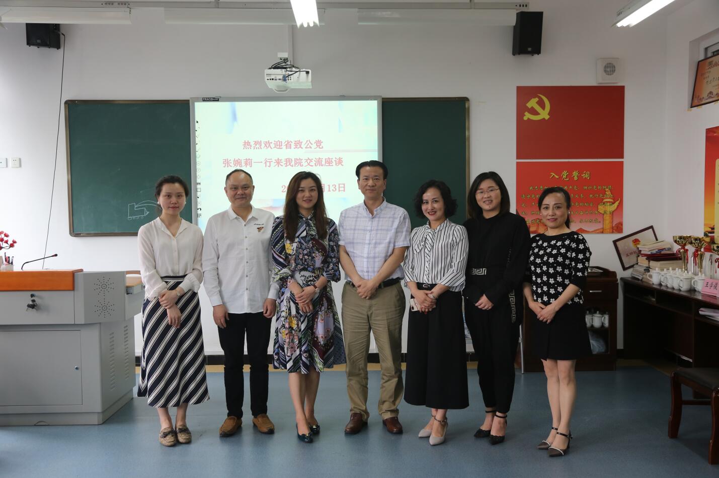 5月13日下午,在雅安市政协人资环委主任陈志强陪同下,致公党党员、沃英国际教育有限公司、菁优网总经理张婉莉一行到我院进行交流座谈。护理学院院长王静,护理学院党总支书记姚婕,副院长李燕,教研室主任、附属医院护理部副主任陈俊参加座谈。