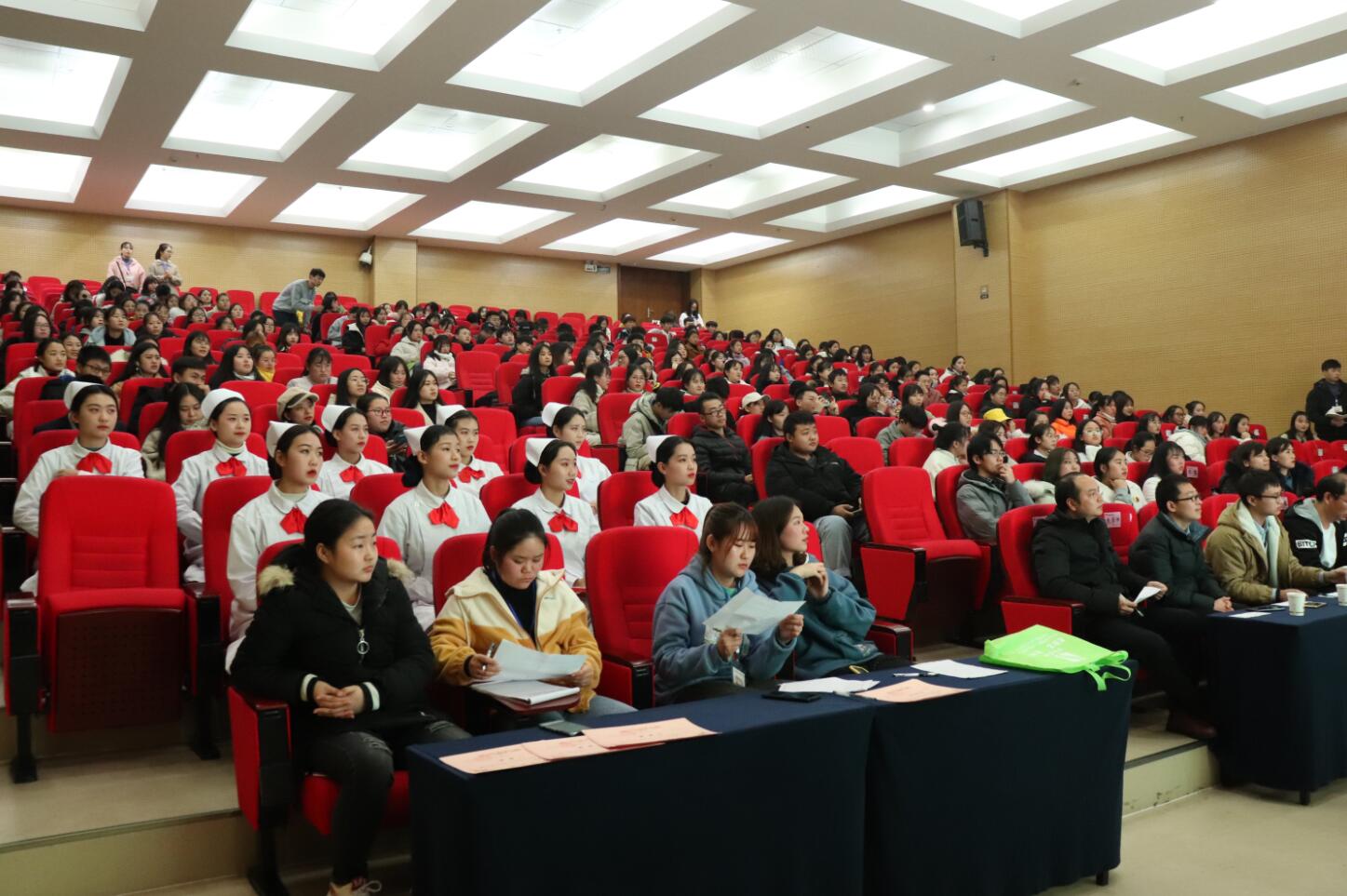 12月23日,由护理学院主办的第十届校园艺术节之护理学院第六届“南丁格尔”杯寝室文化设计大赛在青年路校区学府花园酒店五楼博雅厅顺利举行。护理学院党总支副书记叶芋伶,院团委陈艾昕,学生处宿管中心周雅鹏、易班工作站刘璐,基础医学院团总支书记赵武博,护理学院团总支书记万黎、副书记朱学坤及李杨老师应邀出席并担任评委。