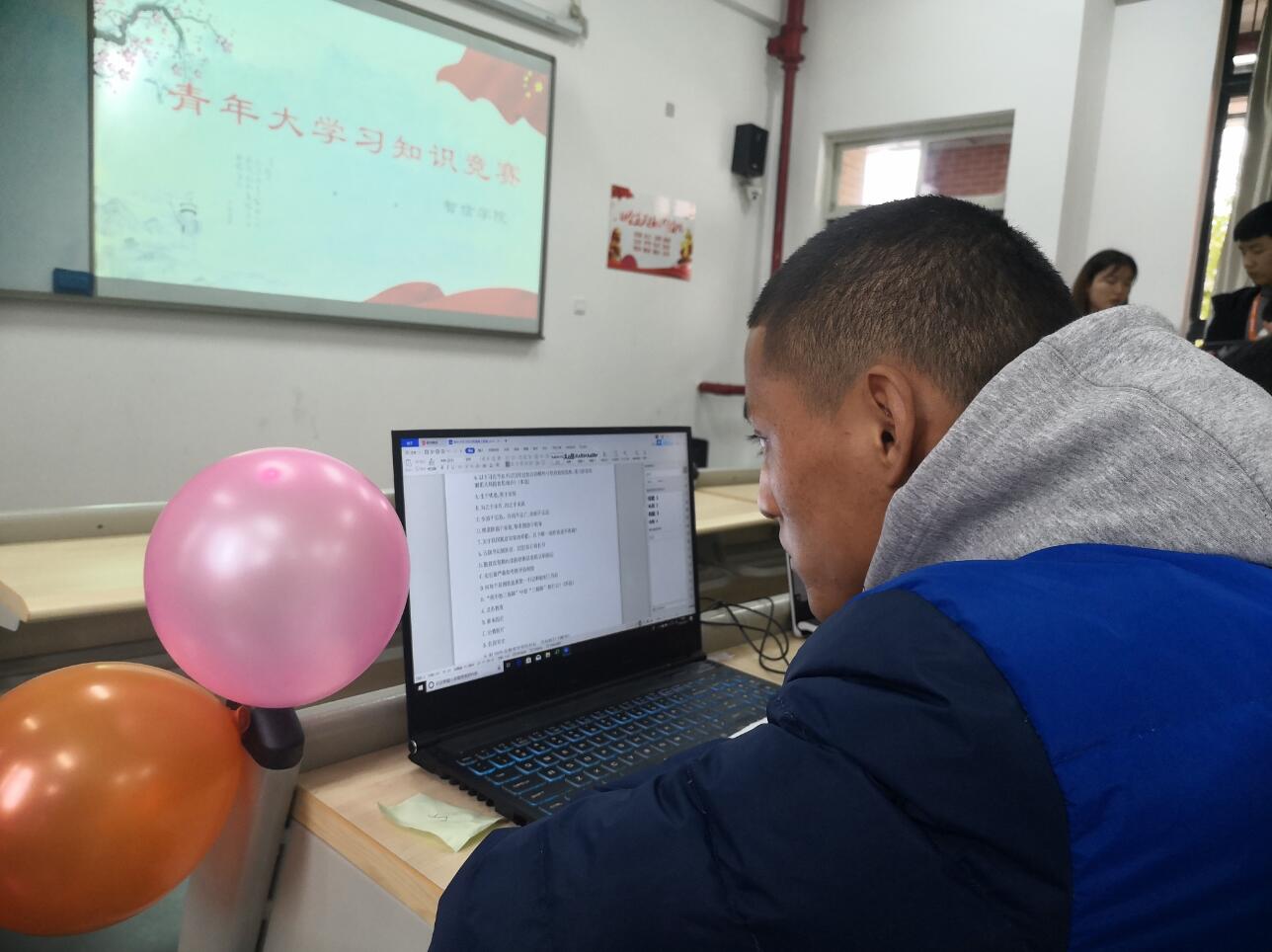 竞赛活动中,同学们采用闭卷的方式答题,回答青年大学习第七季内容,无硝烟的战场格外紧张,在有限的时间里奋笔疾书,同学们都很优秀,通过三轮测试才决出胜负。