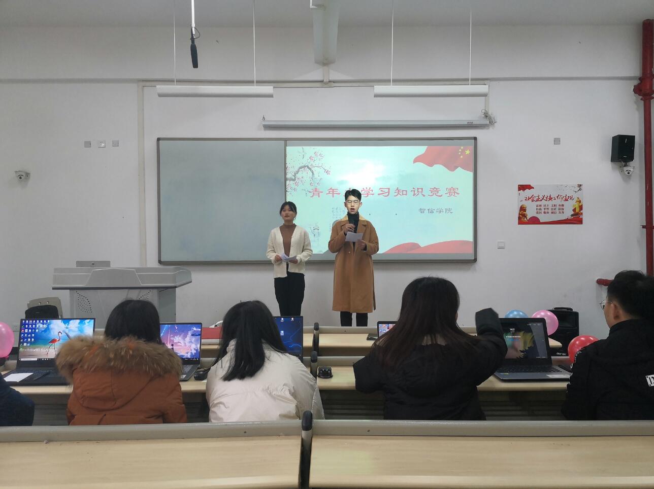 为响应共青团中央号召,引导广大青年不忘初心、牢记使命,切实增强“四个意识”,坚定“四个自信”,做到“两个维护”,更加紧密地团结在以习近平同志为核心的党中央周围,坚定不移听党话、跟党走。智信学院团总支12月17日下午在经开区实训与服务中心2107教室举办了“青年大学习知识竞赛”。
