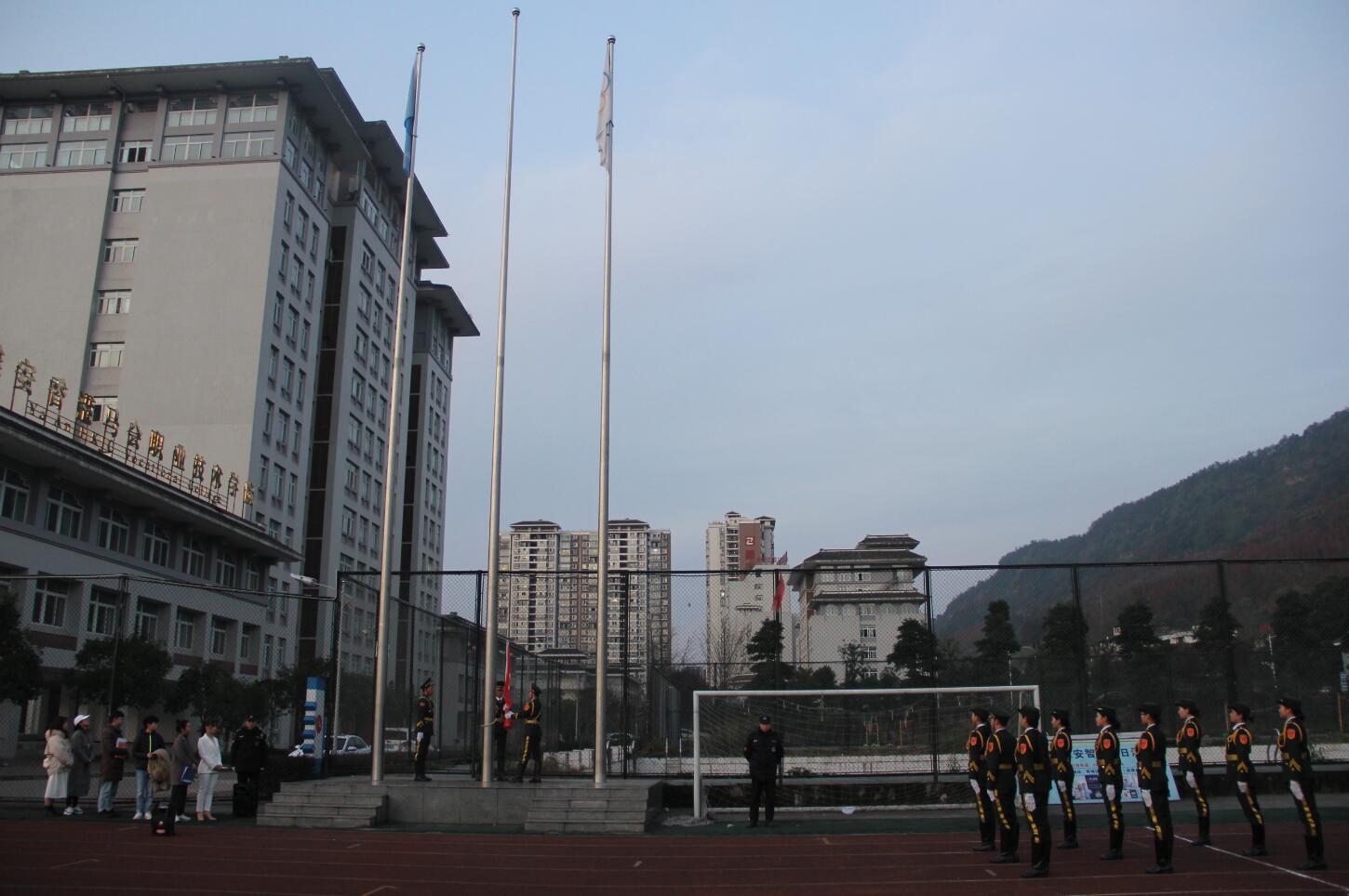 12月9日,护理学院升旗仪式在青年路校区田径场举行。学院团委书记刘永恩,护理学院党总支书记姚婕、副书记叶芋伶,团总支书记万黎、副书记朱学坤及教师参与活动,护理学院2000余名在校生参加升旗仪式。