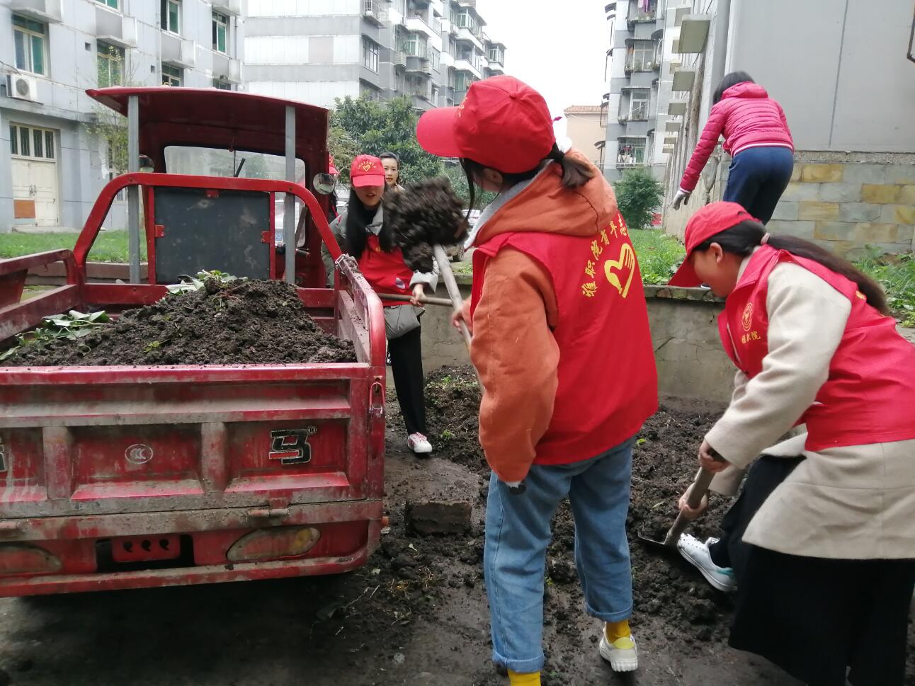 上午七点半在社区负责人和青志协副部长王雪梅的共同带领下,志愿者们走进社区,帮助社区居民们维护社区环境卫生、劝导车辆规范停放、打扫社区的图书馆、捡拾垃圾、除草、搬运、物泥土砖块等。