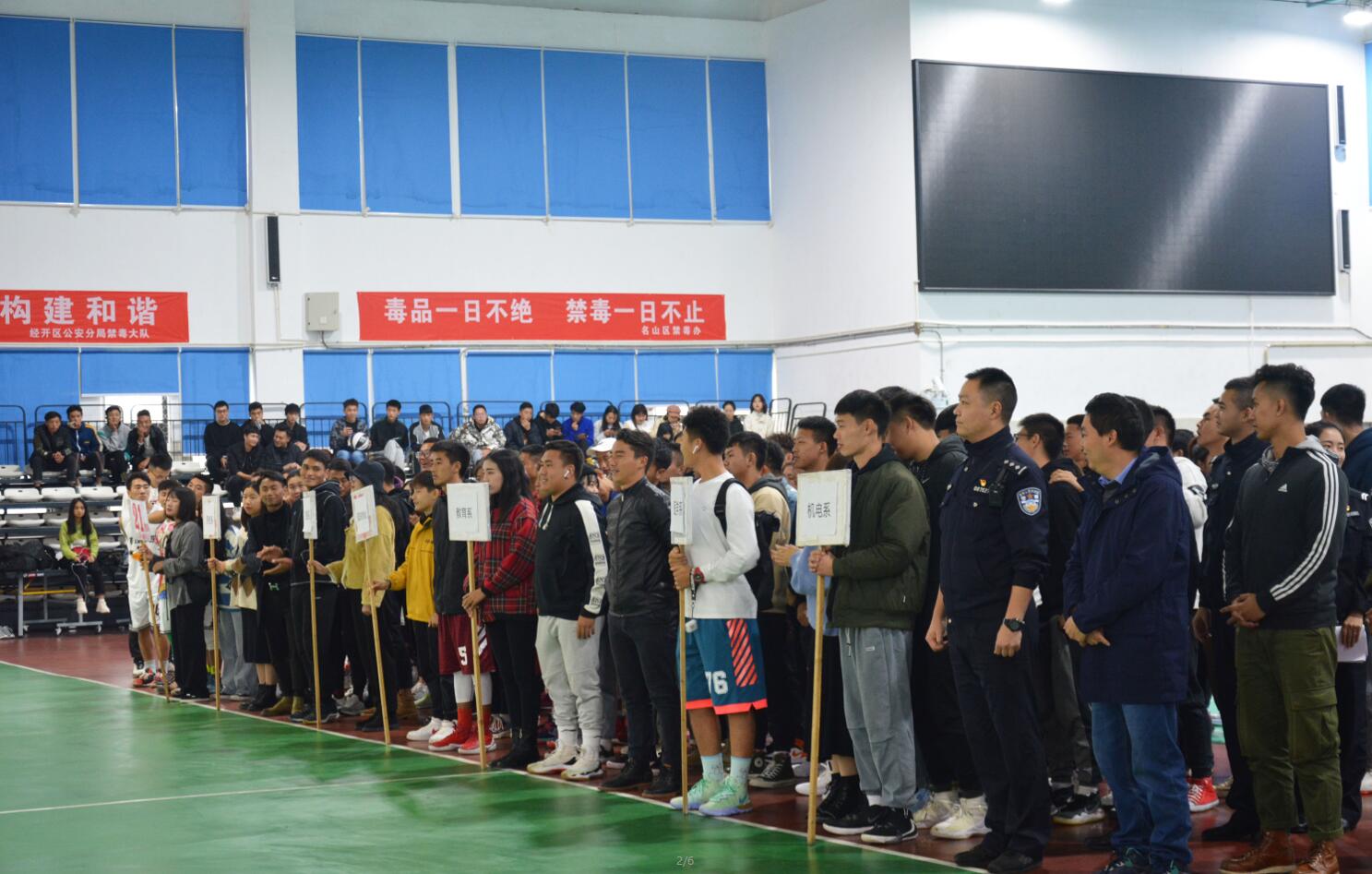 为积极响应雅安市创建全国禁毒示范城市活动,大力营造“健康生活?绿色无毒”的健康生活氛围;11月5日,由院团委主办,院学生会体育部和篮球协会共同承办的Beat365唯一官方网站2019年“禁毒杯”篮球比赛的开幕式在经开区实训与服务中心体育中心举行。名山区公安分局禁毒大队、经开区公安局禁毒大队等5个校外单位代表、各二级学院球队、篮球协会球队等14支校内队伍参加了开幕式。