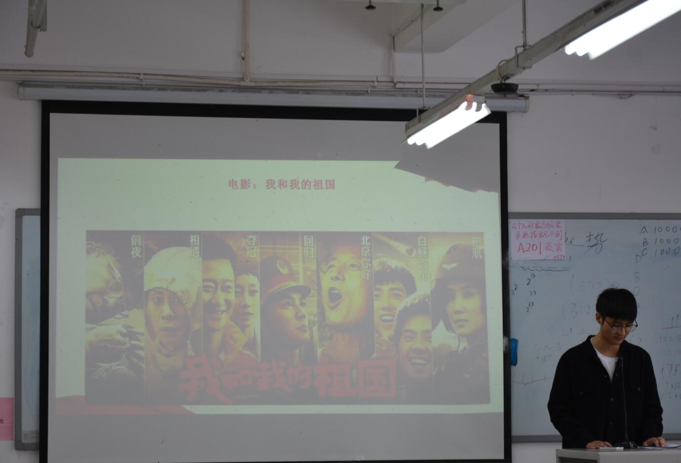 会上,由李争辉同学向我们讲述电影《我和我的祖国》中他所理解的爱国之情,在平凡人质朴真挚的故事中,以小见大,反应出大时代里令人心潮澎湃的国家大事件,所谓英雄,就是普通人拥有一颗伟大的爱国心;新中国成立70周年以来,发生了翻天覆地的变化,我们都为祖国的进步而骄傲。“少年强,则国强”我们必将继续努力,为祖国的伟大复兴而添砖加瓦。