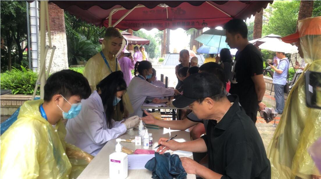 7月11日,“绿丝带爱心医疗”服务队冒雨来到了雅安市雨城区汉碑路社区进行义诊。志愿者们通过对社区居民进行问诊,检查血压、血糖情况,并根据居民的具体身体状况进行康复手法治疗,得到了社区居民的普遍认可。在义诊过程中,志愿者与居民亲切对话,了解了社区老人的日常生活,感受到党和国家对农村问题的重视,同时认识到当代大学生应当珍惜青春,心怀大志,在党和国家的领导下为人民谋幸福、为国家富强不懈奋斗。