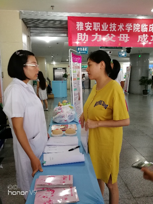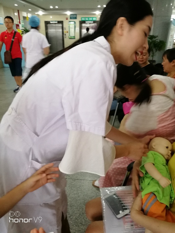 2019年8月5日上午,附属医院妇产科团队在住院楼大厅开展主题为“助力父母 成功母乳喂养”的宣传活动。在科主任卢永丽的带领下,廖霞、周雅萍、张露萍、曾文丽、徐珊等医护人员参加此次活动。