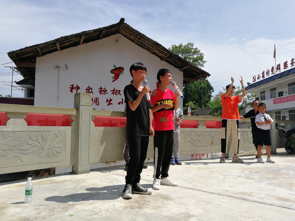 老师与同学们一起布置好场地后,活动在极富动感的节奏性舞蹈《98K》拉开序幕。随后,一首悦耳动听、温柔缠绵的《红色高跟鞋》将气氛活跃起来。游戏《你比我猜》让小朋友们释放出了活泼好动的天性;民间游戏《击鼓传花》进行时,随着鼓声,紧张的气氛在空中弥漫……游戏结束后,小朋友们个个“不甘示弱”,也纷纷展示了自己的“看家本领”:自信的歌唱、轻快的舞蹈。志愿者们和小朋友们跳起了活泼有趣的幼儿集体舞。“让我在天全的街头走一走,坐在村委会的门口……”改编版歌曲,幽默风趣接地气,让活动显得和谐、融洽。