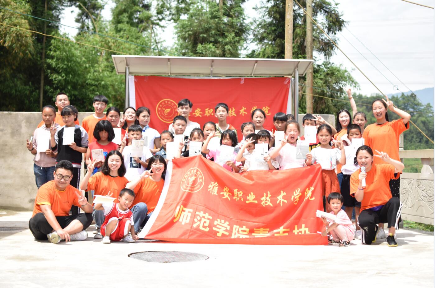 6月1日,在师范学院团总支书记左习成老师的带领下,学生会干部、学生志愿者共10名同学前往天全县老场乡小落村开展了“六•一”儿童节关爱活动”。