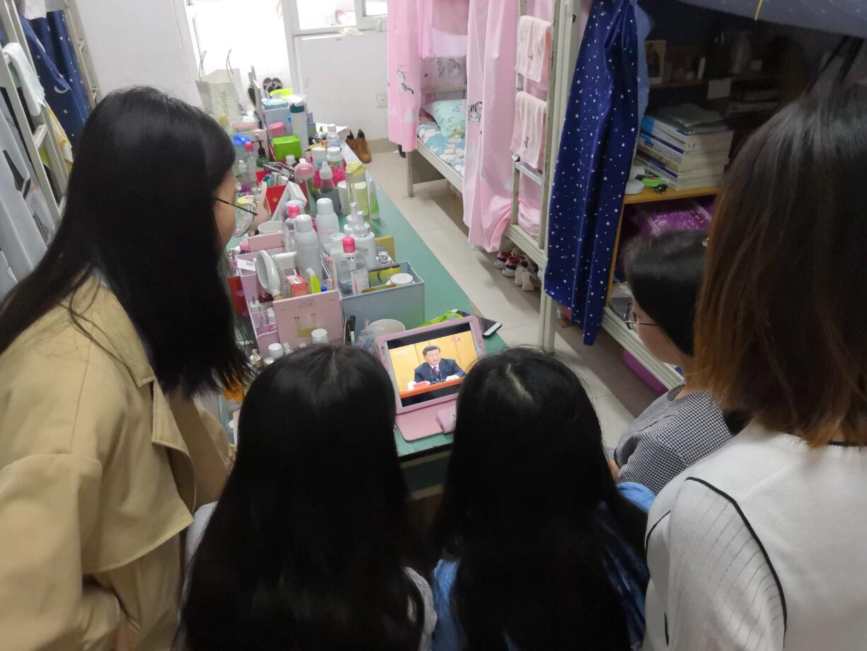大会学习后,同学们自主学习习近平系列讲话,表示要努力完成总书记对新时代青年提出的期望,勇做走在时代前列的奋进者、开拓者、奉献者。
