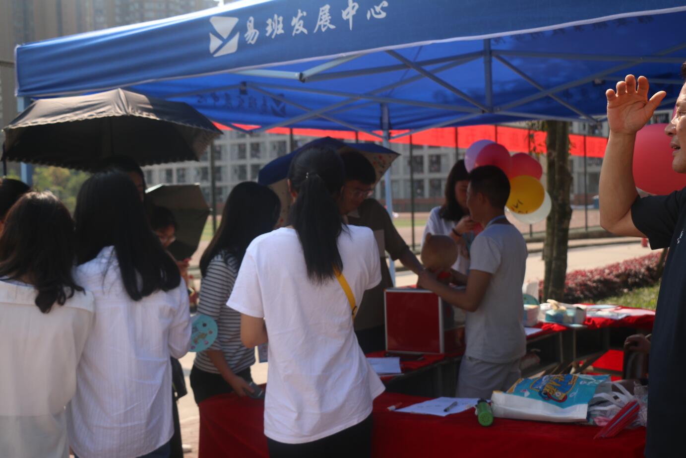 同时,易班学生工作站的同学们在运动场门口设置易班活动点,开展现场抽奖、你划我猜和听歌识曲等一系列喜闻乐见的活动;热心服务全校师生,提供饮水、简易扇子和休息场所,让老师和同学加深了对易班的了解和喜爱。
