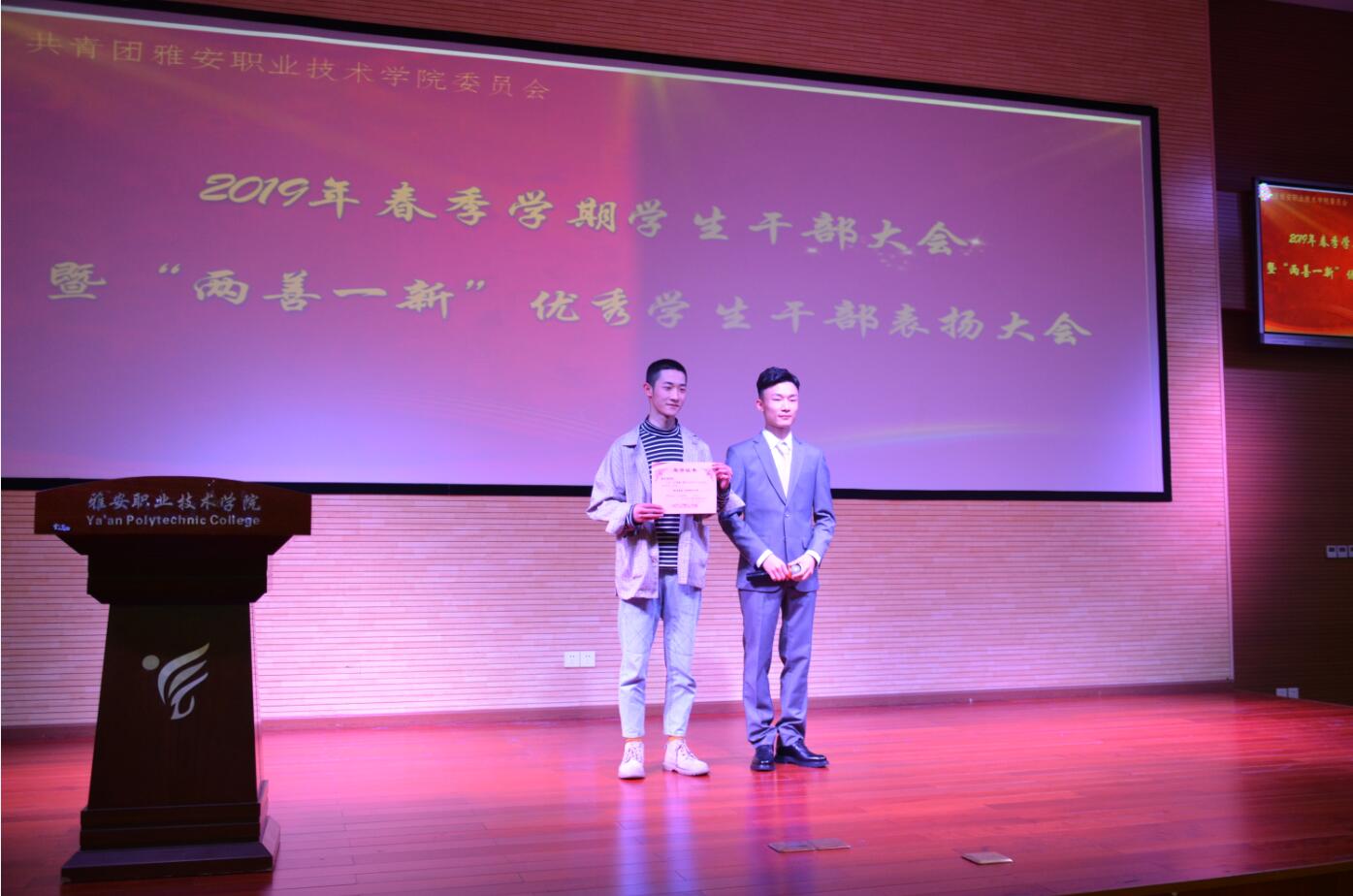 3月26日,2019年春季学期学生干部大会暨“两善一新”优秀学生干部表扬大会在青年路校区实验实训楼二楼多功能厅拉开帷幕,团委书记刘永恩、团委老师及150余名学生干部代表参加了活动。