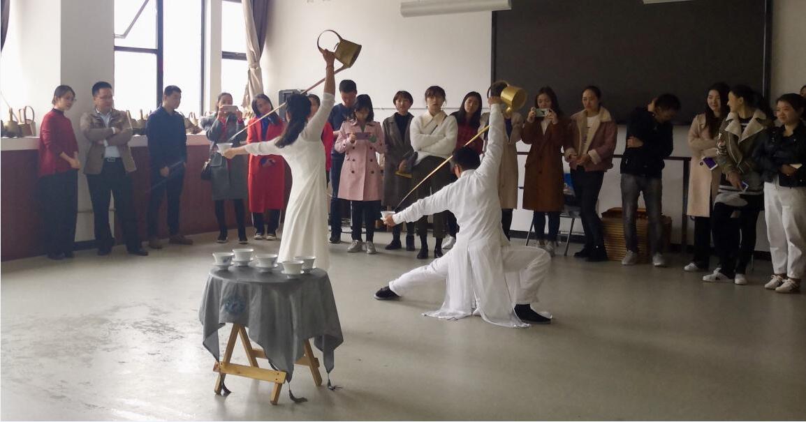 【本网讯】11月6日,经济与管理学院茶艺与茶叶营销专业教师蒋丹在青年路校区经济与管理学院实训楼301为30名雅安市委市政府大型志愿者服务队队员开展“品鉴雅茶”的茶知识讲座。