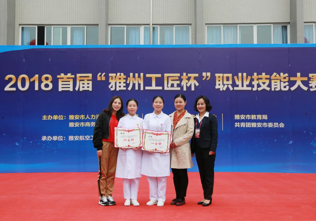 【本网讯】10月11日,由四川省雅安市人力资源和社会保障局、雅安市教育局、雅安市总工会等6个部门主办的2018首届“雅州工匠杯”大赛在雅安航空工业联合技工学校举行。我院护理学院衡倩老师和2017级助产2班李孜同学在任冬梅、向岚老师的带领下,参加本次比赛并分别荣获一个二等奖和一个一等奖。