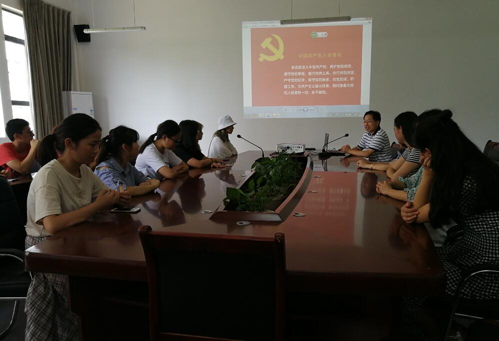 【本网讯】7月5日中午,药检系预备党员入党宣誓大会在食品药品生产性实训基地二楼会议室举行。党支部书记杨泽刚、支委成员杨伍哈及本次发展的全体15名预备党员参加此次宣誓大会。