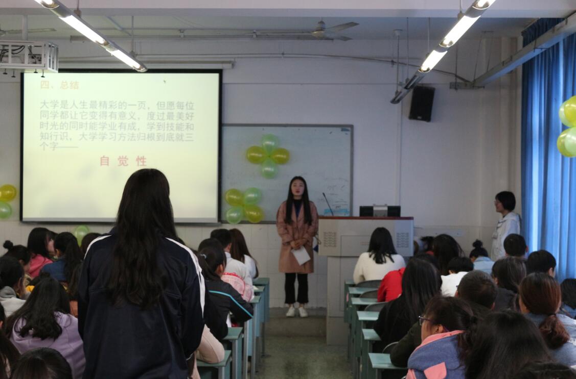大会在励志短片“田埂上的梦”中拉开序幕。随后,6名优秀学生代表上台发言,分享自己科学的学习方法。15级普护3班杨颜蔚讲述了学习思想的转变以及明确奋斗目标的重要性;英语协会沈愉超从词汇、听力、阅读等方面向同学们介绍了学习英语的方法。随后,各位优秀学生代表更是倾囊相助,帮助新生们解答学习上的疑惑。同学们在良好的交流气氛中,共同探讨学习方法。