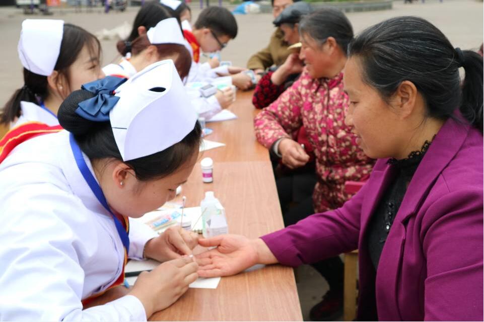 【本网讯】为大力发扬“奉献、友爱、互助、进步”的志愿服务精神,3月13日,学院青年志愿者服务队在上里镇广场中心开展了 “温暖老少,共筑美好未来”义诊活动。此次活动提供量血压、测血糖等服务,吸引了许多居民前来参与。