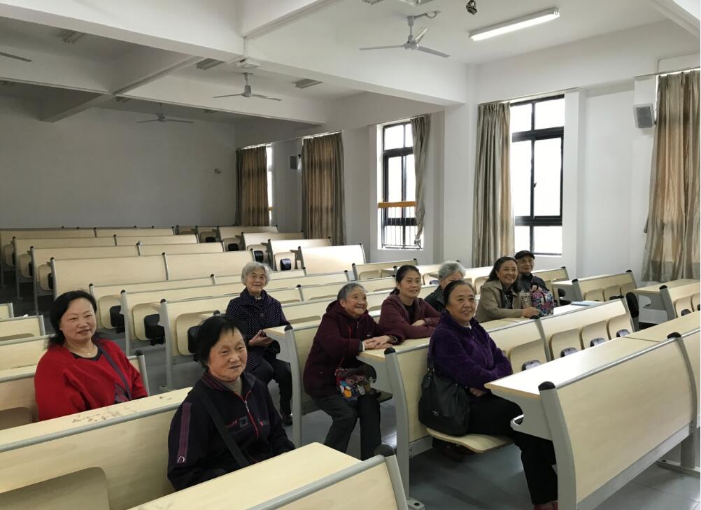 参观过程中,祝继英对实训与服务中心的修建情况、建设规模、功能布局等进行了详细的解说。老同志们看得仔细,在一一参观了实验楼、多媒体教室、教师休息室、图书馆、校医室、学生寝室、体育场和卫生间等后,有的还专门到无课的多媒体教室里坐坐,感受感受。中午,大家一起在学院食堂吃工作餐。