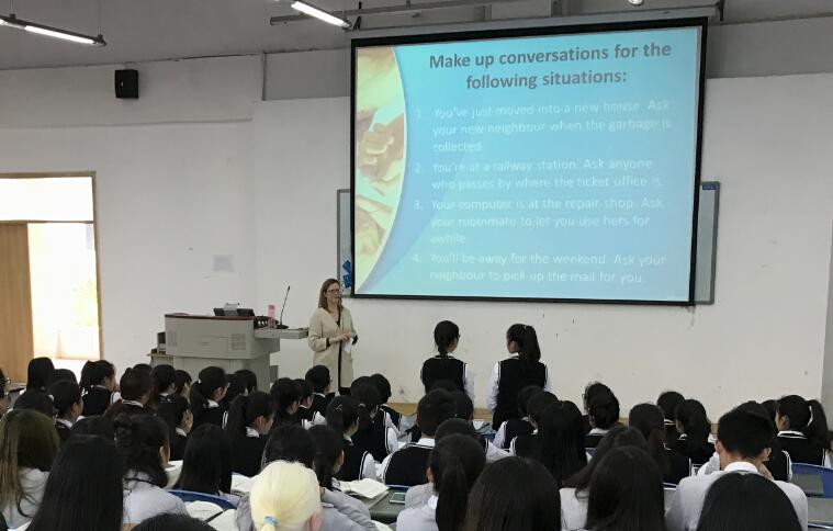 加拿大外籍教师维多利亚主讲课程《Oral English》,讲授在英语背景下“请求”的不同使用方法,用纯正的英语向英语专业的同学上了一场生动、活泼的英语口语课,课堂气氛活跃,师生互动频繁,情境设计便于学生理解和掌握,教学目的明确,教学重点突出。