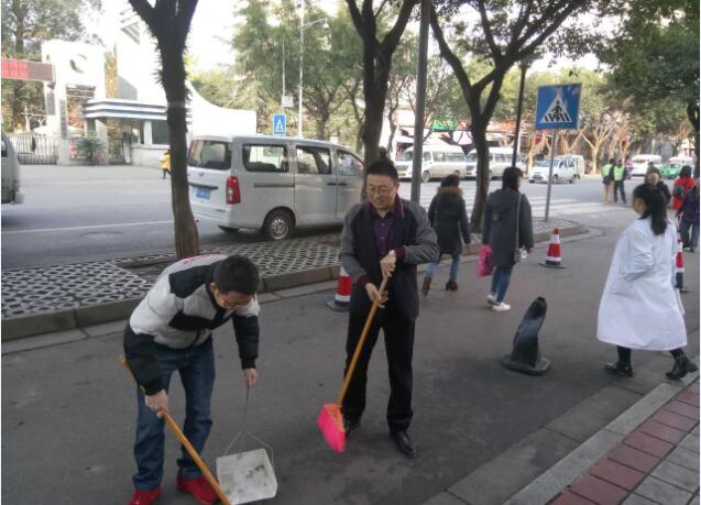【本网讯】11月17日上午在学院纪委书记谭宏同志的带领下,组织保卫处党小组的党员同志响应雅安市和学院爱国卫生运动的号召,对育才路校区大门到八角亭附近进行了一次环境卫生大扫除活动。