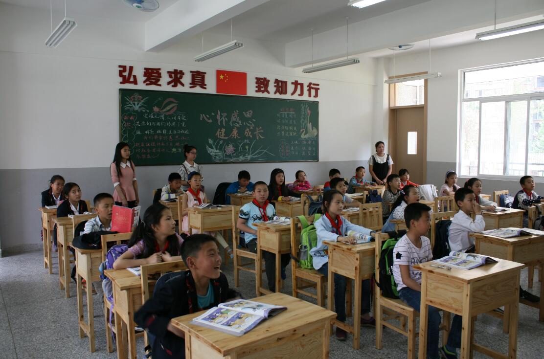 【本网讯】为增强学生的社会实践能力,培养学生的职业技能,为今后的实习和就业打下良好基础,结合英语教育专业的专业要求,5月4日下午,教育系普专英语教育专业2014级1班的26名同学在辅导员李文婷、教学管理干事陈鑫、王涛和倪周丁的带领下前往雅安市汉碑慈济小学为三、四、五年级共七个班级的200多名小学生们开展了以“教学实践”为主题的志愿服务活动。