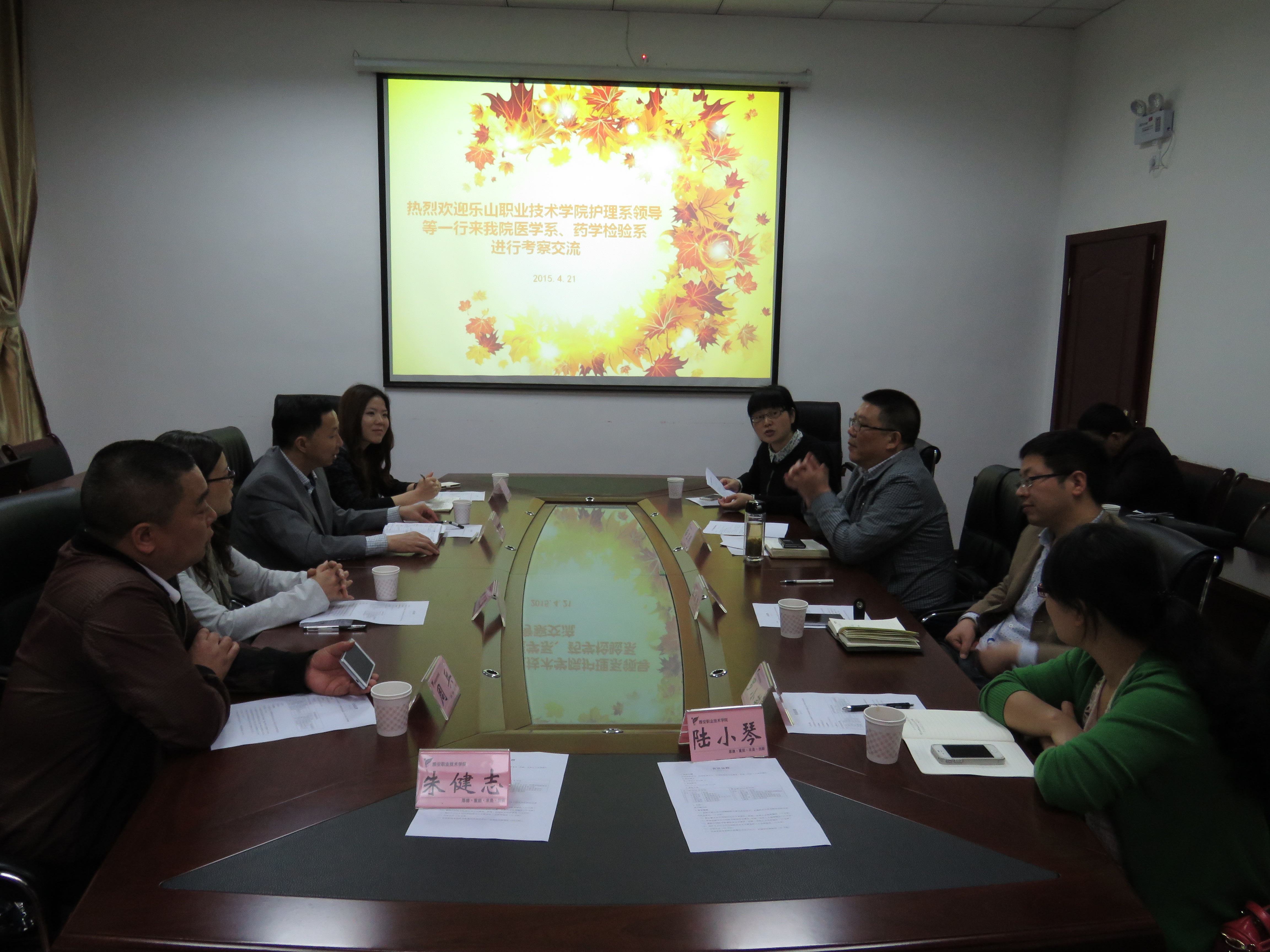 4月21日上午,乐山职业技术学院护理系主任谯时文、副主任史良俊等一行四人来医学系、药检系考察交流,主要就该系临床医学专业及准备申报的医学影像技术专业和医学检验专业的专业建设事宜进行交流。医学系主任薛正毅、系党支部书记祝继英,药检系副主任李成忠、罗晓莉及医学影像教研室主任夏晓和医学检验教研室主任陆小琴等陪同来宾考察了育才路校区的医师技能实训中心、医学影像技术实训中心和附属医院检验科,并进行了座谈。