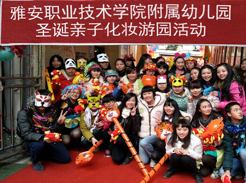 为深化“院园合作,学岗结合”,提升学生岗位素质,12月25日,又是一年圣诞季,在教育系副主任陆小路及部分老师的带领下,教育系2014级学前教育1班和2013级英语教育班的同学们参与了雅安雨城区第一幼儿园(Beat365唯一官方网站附属幼儿园)的“圣诞亲子化妆游园活动”。