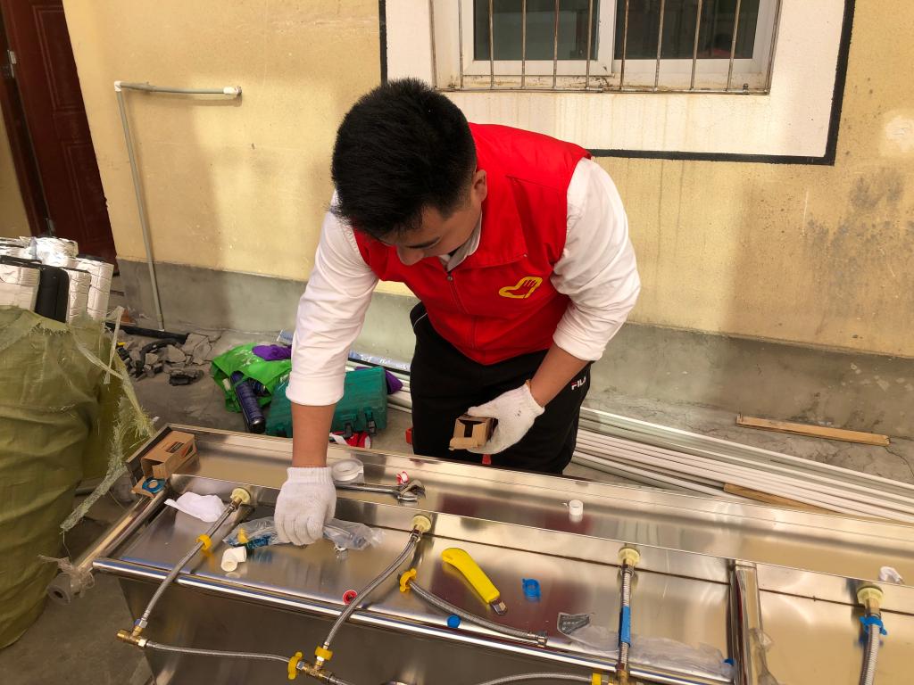 为改善祝桑乡小学师生的生活条件,王明伟率领驻村教师陈艾昕、闫国彬、村党员干部等快速组成了“1+N”志愿服务队,为高效优质完成任务,志愿服务队每天从早上7点工作到晚上8点,充分展现出党员教师吃苦耐劳、为群众排忧解难办实事的服务精神,最终圆满完成4个热水淋浴系统的安装,以及浴室和食堂的水电改造升级。