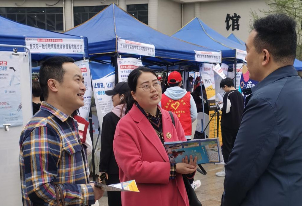 为更好搭建用人单位和毕业生双向选择的平台,加强与用人单位的交流合作,促进毕业生更充分更高质量就业,3月23日,由学院招生就业处搭建平台,师范学院院长冯良亮,师范学院党总支副书记王曦一行赴重庆第二师范学院参加2023届毕业生春季双选会,并以此次双选会为契机,针对师范学院专科层次小学教育专业就业难的问题,走访用人单位,调研用人需求,拓展就业资源。
