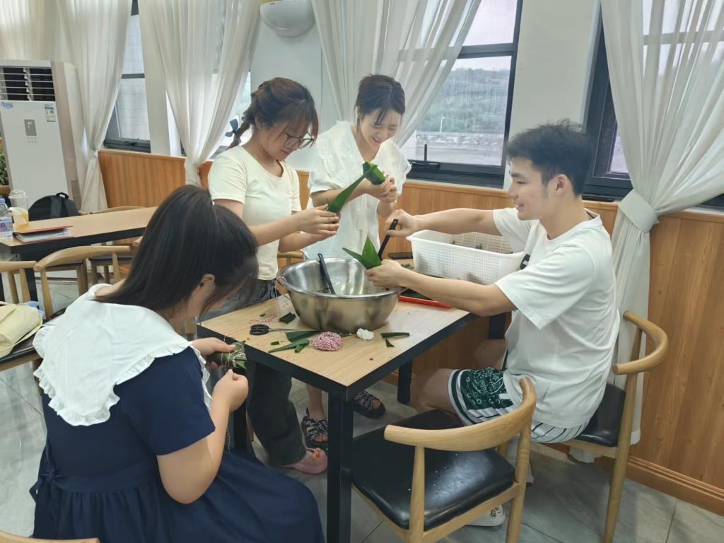 一年一度的端午佳节来临之际,为进一步丰富教职工精神文化生活,弘扬中华民族优秀传统文化,6月20日,由学院工会举办的端午节师生包粽子活动在经开区校区举行,来自学院各行政部门教职工,各二级学院师生代表、留学生代表等80余人参加了此次活动。