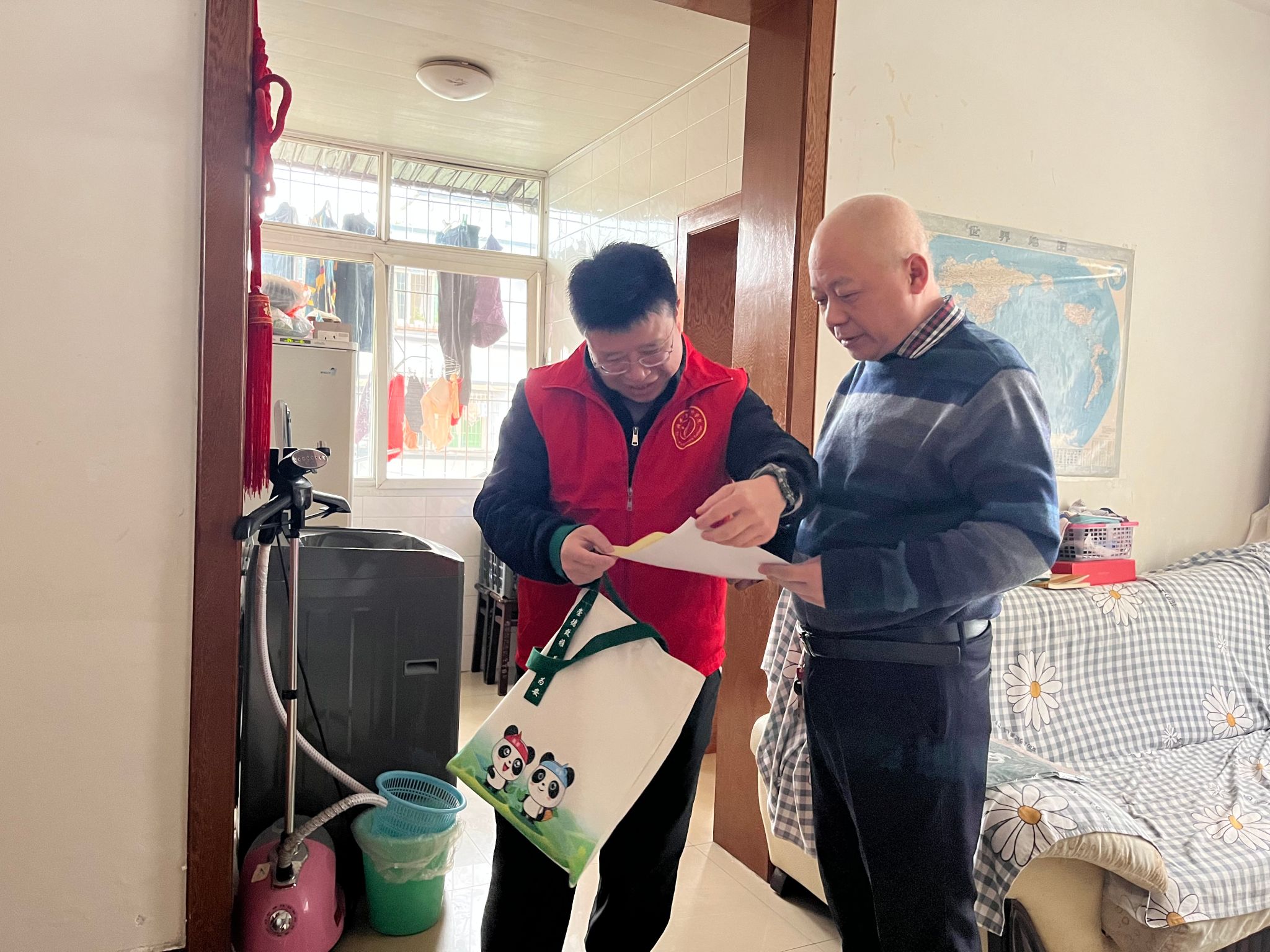 活动中,党员志愿者们分成多个小组来到居民家中,发放创城宣传资料及围裙、环保袋等实用的小礼物,并开展了用火用电用气安全知识宣传,提醒大家吸取近期区域内外发生的火灾事故教训,防患于未然,度过一个平安、祥和的新年。