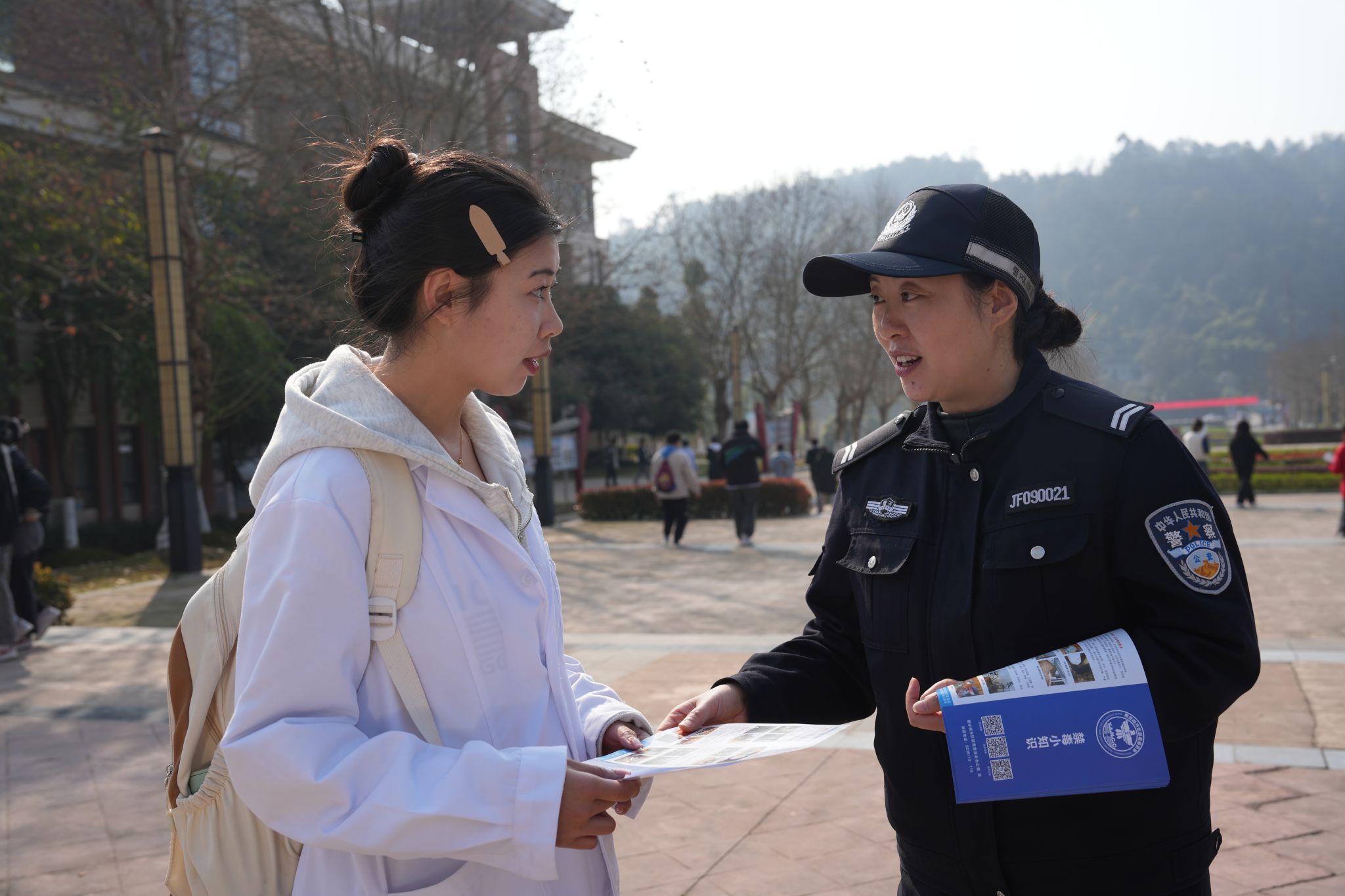 学院宣传统战部的工作人员和公安民警一起向师生发放了图文并茂的宣传手册,直观地展示了网络谣言、网络诈骗以及毒品问题的严重性和危害性。