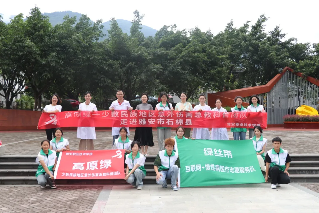7月13日,在石棉县安顺场,学校高原绿——少数民族地区意外伤害急救科普实践团正在进行高原急救知识的科普宣传,并现场演示了常见的意外伤害如何进行急救。临床医学院“绿丝带”慢性病医疗志愿服务队的志愿者正在为村民进行慢性病防治健康义诊活动,将意外伤害急救知识和慢性病防治知识送到基层送到乡村。