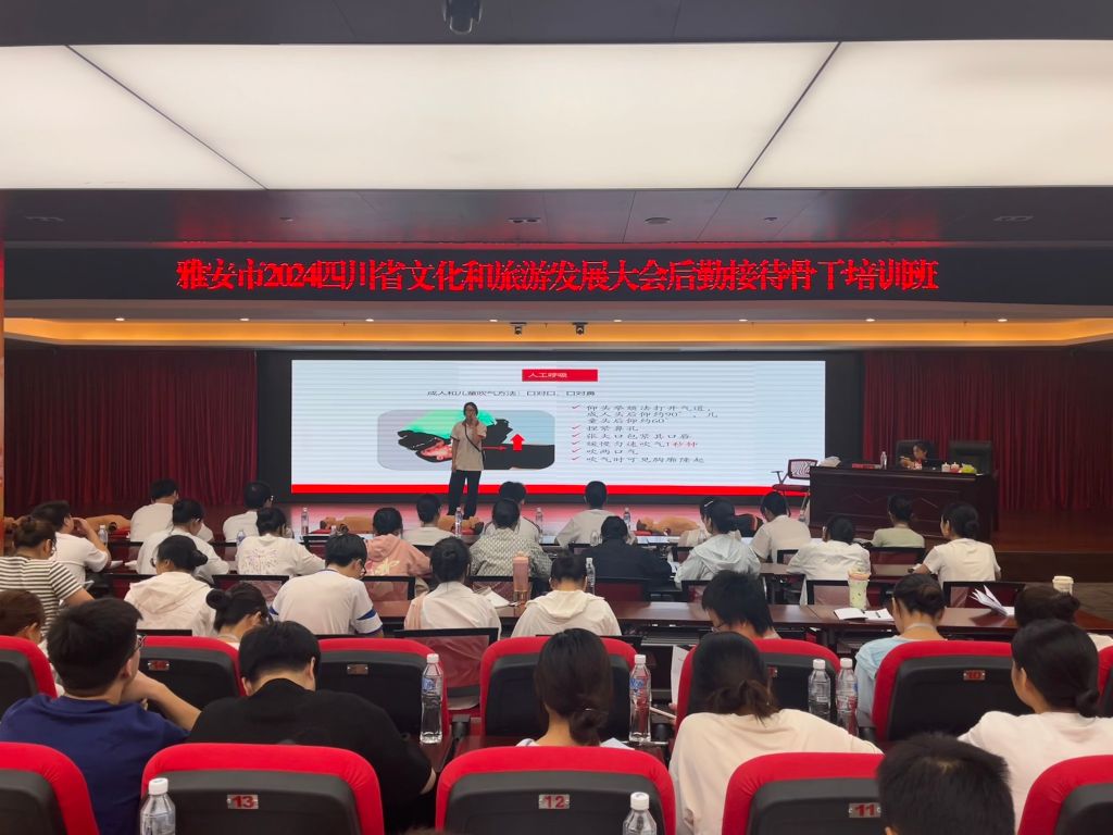 8月29日上午,学校护理学院应急救护培训师资黄丹、伍静薇受雅安市红十字会邀请,走进2024四川省文化和旅游发展大会后勤接待骨干培训班,进行应急救护知识培训,来自全市各县(区)、市级各单位以及高校的300余名旅发大会后勤接待骨干参加培训。