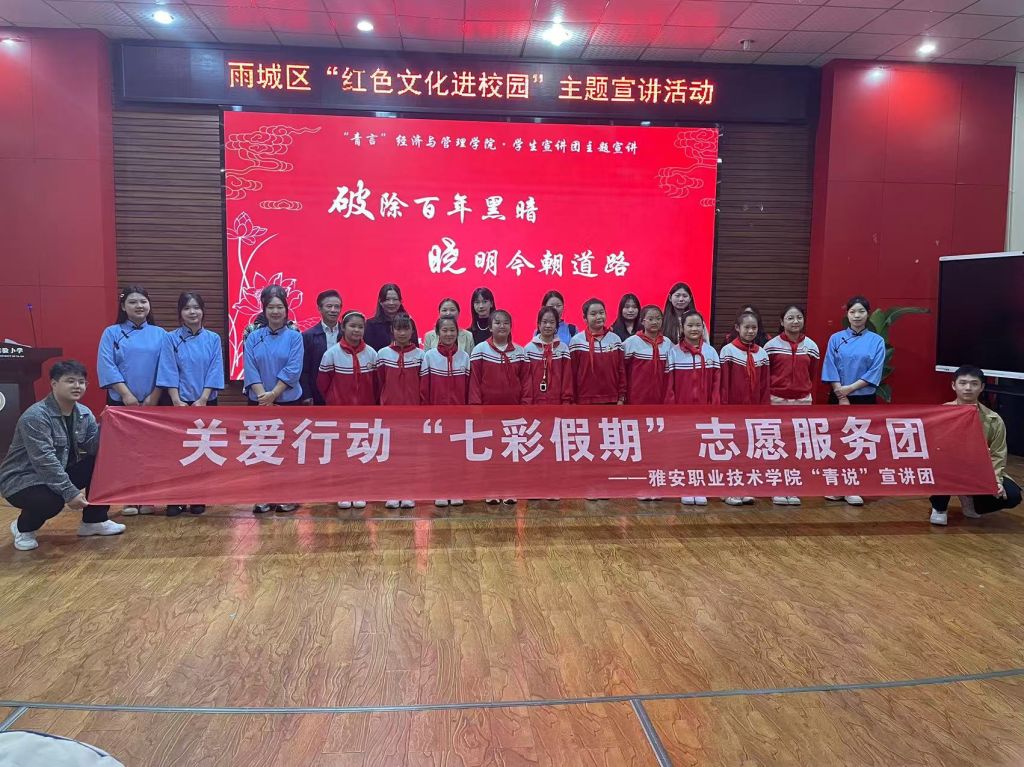 本次活动由雅安市雨城区委党史研究室、雨城区新时代文明实践中心主办,学校经济与管理学院承办。在活动中,学校经济与管理学院“青说”宣讲团将革命精神与爱国主义教育相结合,凭借丰富多样的形式、生动有趣的互动,展现了秋瑾、陈树湘等榜样人物的精彩故事,并通过红色情景剧《破晓》展示出李大钊先生为代表的共产党人百折不挠的决心和勇气,充分将美育与党史学习教育相融合,推动师生感悟先辈精神,涵养家国情怀。