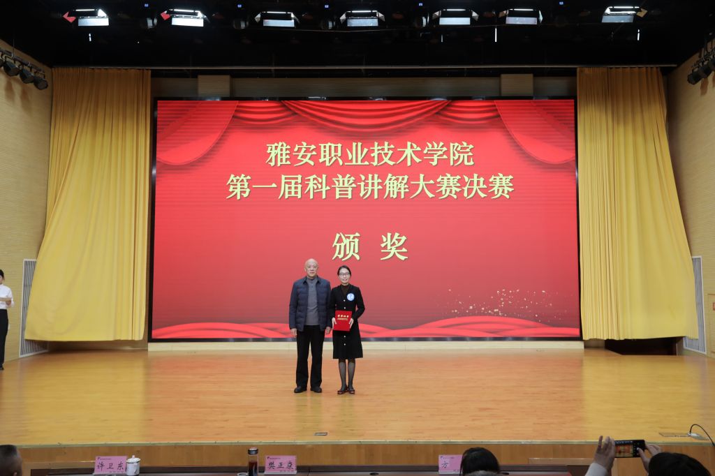 11月26日下午,学校第一届科普讲解大赛在经开区校区聚雅厅举行。大赛邀请学校党委常委、副校长樊正康,雅安市科学技术局农村科技科科长许卫东,雅安市科学技术信息研究院副院长方滔担任大赛评委。科技图书情报处、二级学院负责人,教师、学生代表300余人观看比赛。