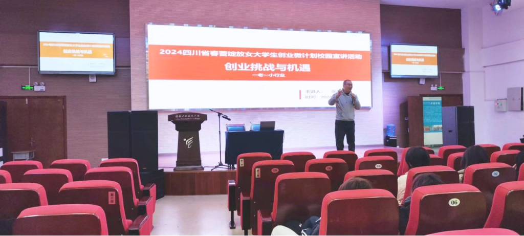 活动开始,潘谦导师向学生介绍了四川省“春蕾绽放”女大学生创业微计划的具体内容,包括校园宣讲活动、校企社人才联合培养、女大学生就业辅导、创业项目孵化与社区对接、成果展示与交流活动。该计划打造了高校、企业、社区三方协同创新平台,为女大学生创业就业提供全链条支持。让学生对“春蕾绽放”女大学生创业微计划有了深入的了解,增加了学生对成功创业的信心。