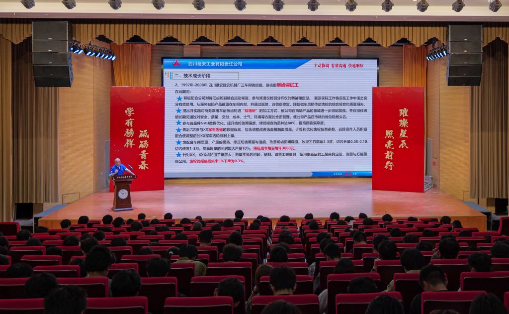 邓国胜以“三十年磨一剑”的匠心历程,为在场师生带来了一场精彩的分享。作为制齿工一级技师,他结合自身从普通技工到行业领军人才的成长轨迹,讲述了攻克高精度齿轮加工技术难题的奋斗故事。他的讲述,不仅展现了精益求精、追求卓越的工匠品质,更传递了对技能的热爱与执着。现场展示的创新成果,引发了学生的阵阵掌声,激发了他们对技能报国的向往与追求。