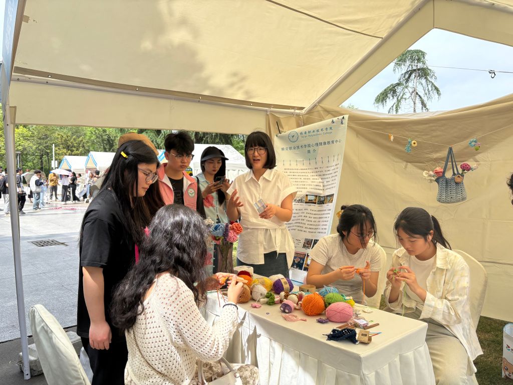 活动现场,我校展位以“指尖疗愈心灵”为核心,通过开展非遗钩织活动,助力参与者排除杂念,放松身心,激发内在力量,培养审美情趣和实践能力。师生们用一针一线编织生活的“减速带”,享受内心的宁静,拥抱生活的美好。活动吸引众多师生驻足体验、拍照留念,累计接待体验者超100人次。