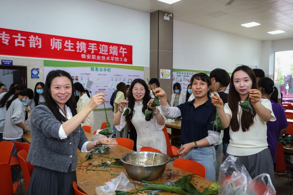 在端午佳节即将来临之际,为丰富教职工精神文化生活,弘扬中华民族优秀传统文化,学校工会于5月27日在青年路校区、经开区校区同时举办“粽叶飘香迎端午 师生同乐续传承”的端午节主题活动,全校教师及学生代表150余人参加。