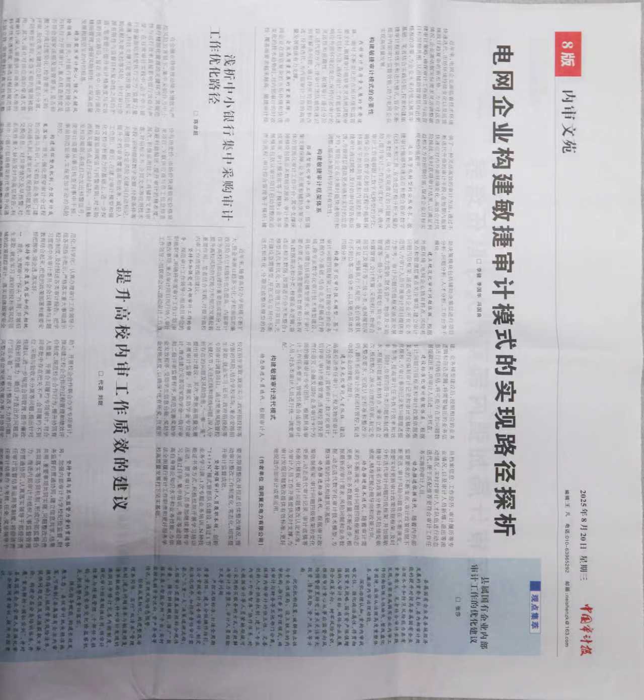8月20日,《中国审计报》专题刊发我校审计处撰写的《提升高校内审工作质效的建议》一文,系统介绍并推广了我校创新形成的“1+1+N”内部审计工作模式。该模式获得全国审计系统的广泛关注和认可。